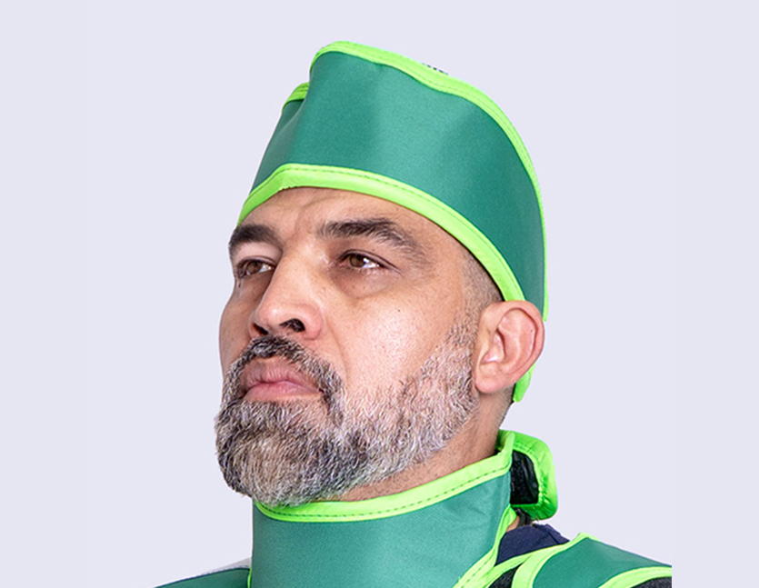 Gorro de protección radiológica. Protección equivalente a 0.5 mm de plomo. Además de nuestro protector de tiroides y delantal, nuestra gorra de malla con plomo puede brindarle protección adicional para su órgano más importante, su cerebro.